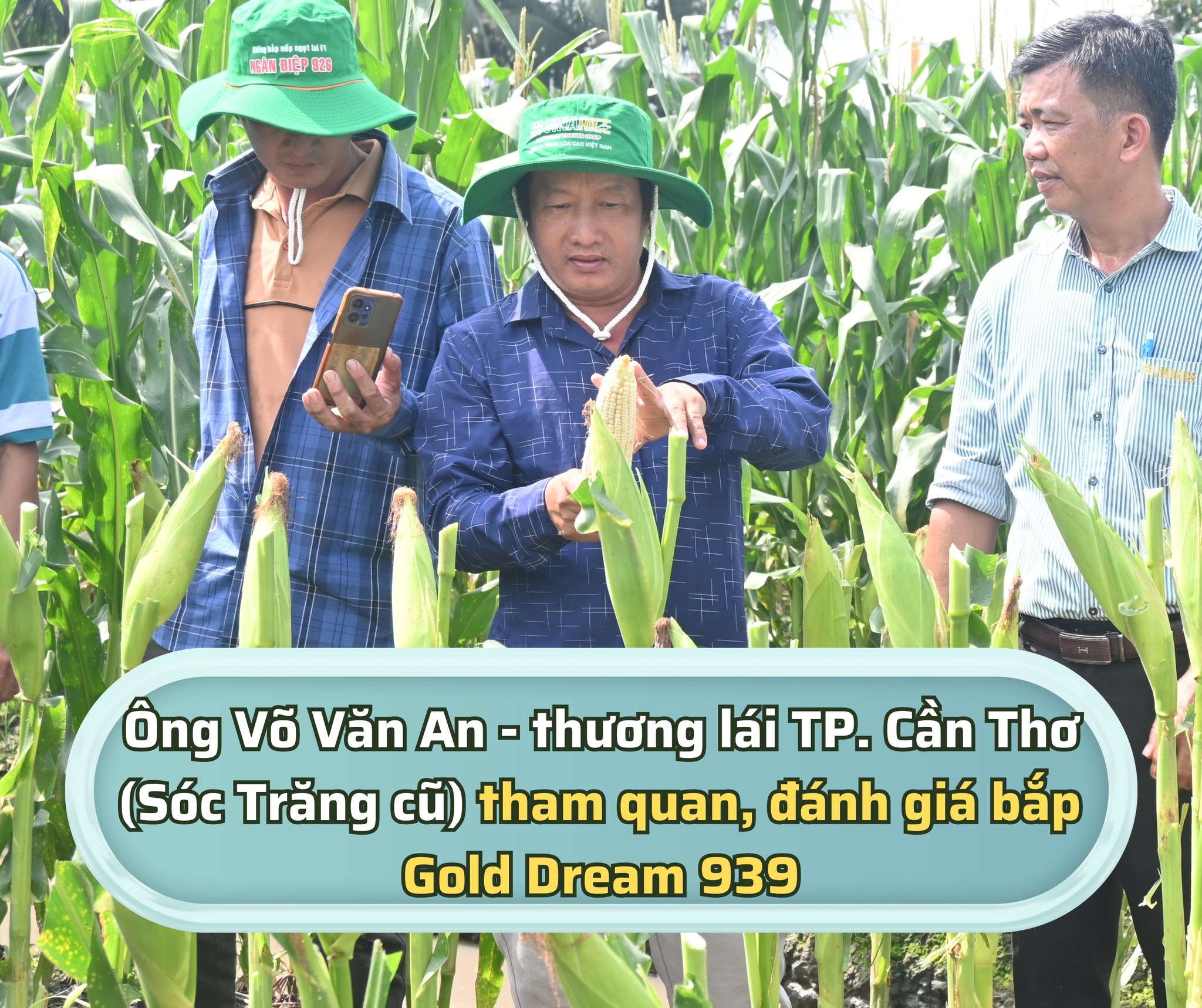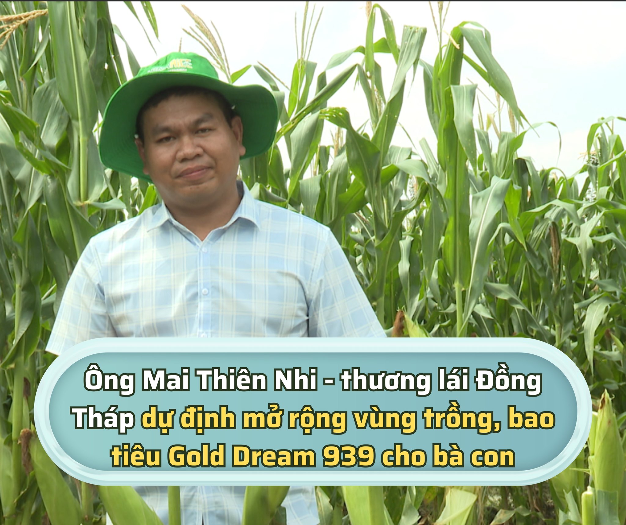 Lần đầu thử nghiệm Gold Dream 939 trên diện tích rộng tại Cầu Kè, Vĩnh Long (Trà Vinh cũ), ông Tình cho biết: “Vụ này tôi có trồng thử, độ đồng đều ổn, trái phát triển mạnh ở giai đoạn sau. So với mấy giống kia thì Gold Dream 939 dễ trồng, trái to đồng đều. Tôi làm 2 ha Gold Dream 939 mùa này dù mưa bão nhưng cây khỏe, chống đổ ngã tốt. Thương lái xuống tận nơi khen bắp đẹp, kỳ vọng sẽ bội thu”.