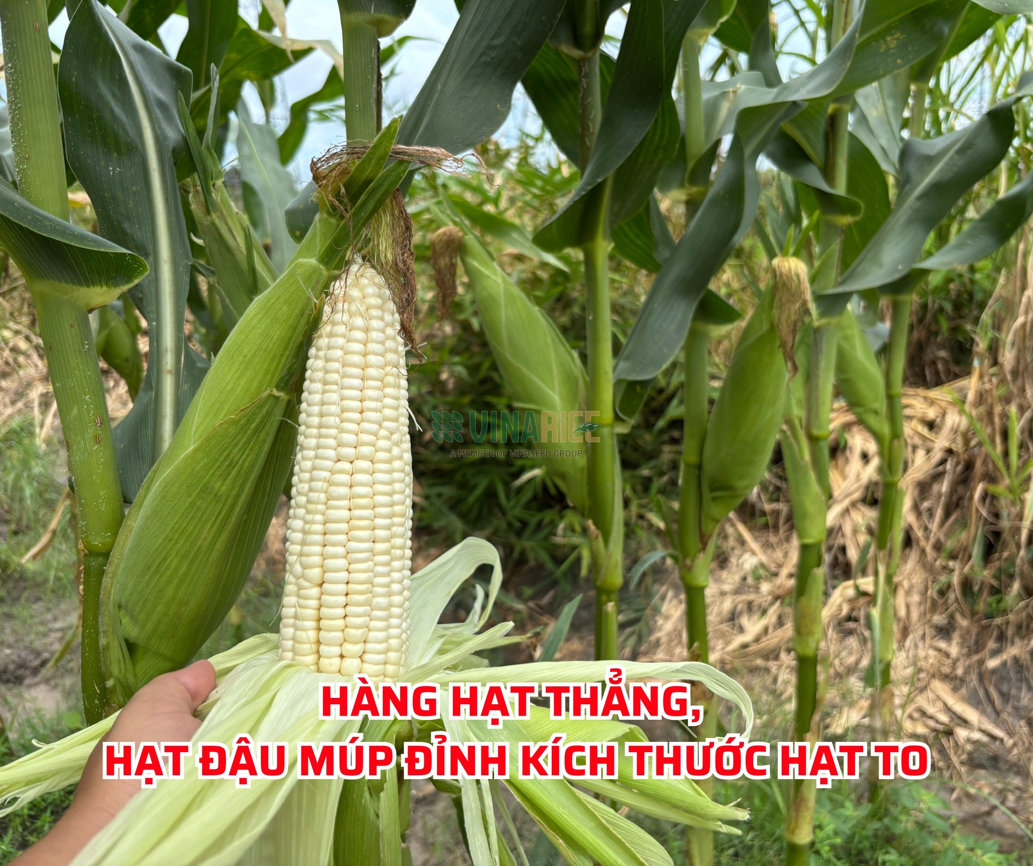 Bắp to, hạt trắng, dẻo – ngọt – thơm – vị đậm, được người tiêu dùng ưa chuộng.